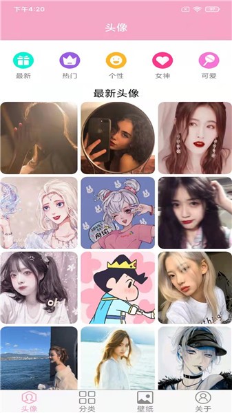 所有的壁纸和头像都进行了分类,用户可以根据分类去查找对应的壁纸和头像使用。