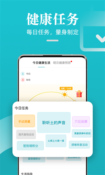 -用户通过一键测试可检查自身的脏腑状态和心率等身体参数
