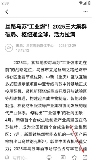 2、在新闻详情页,点击右下角的分享按钮,可打开分享选项面板。