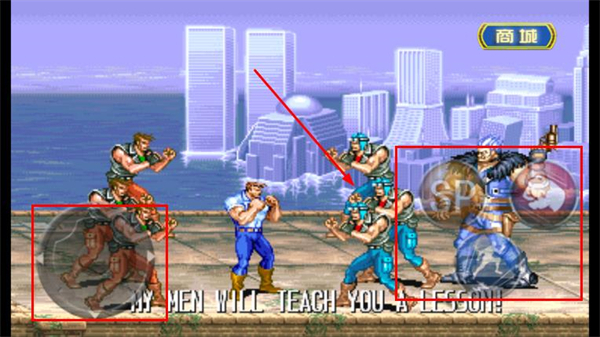 斜踢:跳跃到最高点时按A键(此时可以控制左右攻击方向),穆斯塔法可以在走动中使用这招,其余三人只能在原地跳跃时使用这招。
