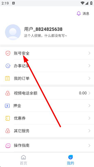 2、在个人页面中,找到并点击上方的账号安全选项。