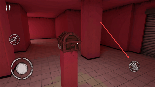 4、遇到恐怖凯蒂猫时,点击左侧的跑步按钮快速移动,避开其追踪范围,保持移动并继续向逃生出口的方向推进。