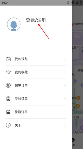 2、在功能菜单中找到登录/注册选项并点击,跳转至手机验证的登录注册页面。