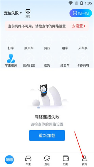 1、打开哈啰应用,在首页底部找到并点击我的选项,进入登录相关页面。