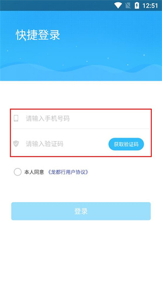 3、在快捷登录页面,依次填写手机号码,点击获取验证码并输入收到的短信验证码。