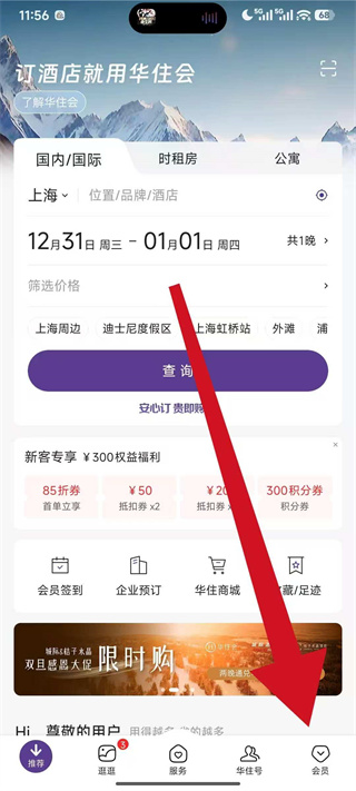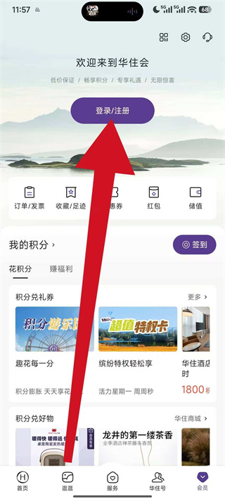 1、打开华住会,点击底部导航栏的会员选项,进入会员中心页面。