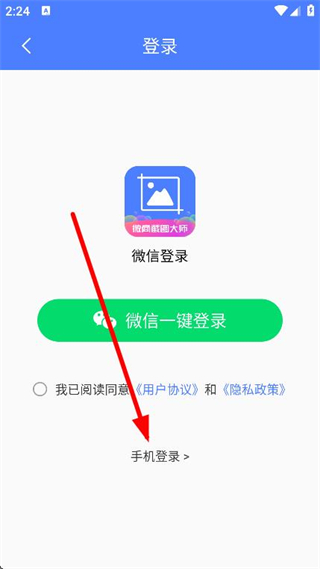 3、在登录界面,点击手机登录,切换到手机号登录页面。