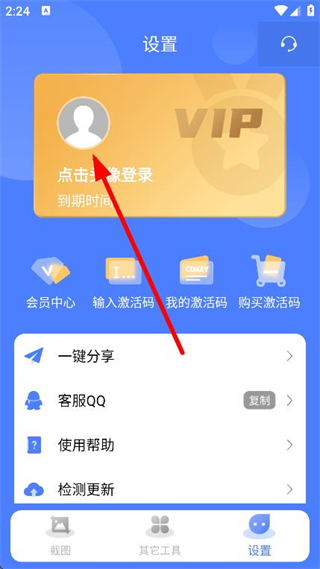 1、打开微商截图大师,在首页点击底部右侧的设置选项。