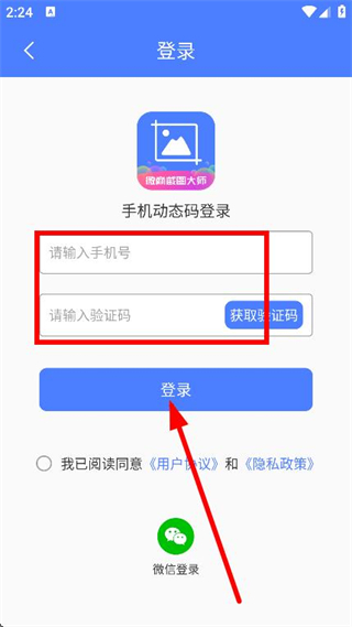 4、填写手机号和验证码,点击登录按钮,即可完成登录。