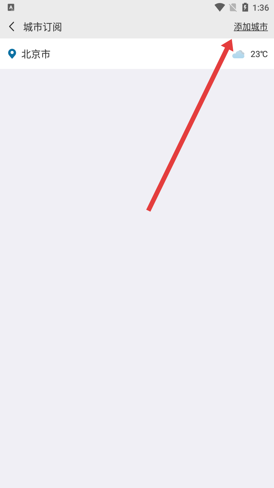 2、在城市订阅页面,点击右上角的添加城市选项。