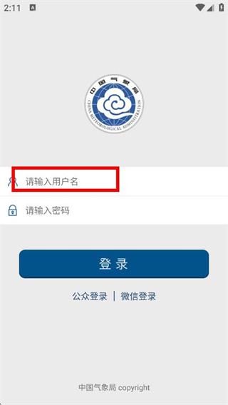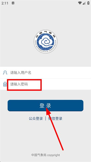 2.普通用户可通过公众账户进行登录,用户名:中国气象、密码:121;
