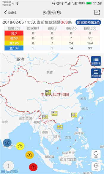 “中国气象”客户端不仅提供权威的气象信息,还为决策用户提供图形化的电子信息地图组件服务,可以在电子地图上展现气象监测、预报服务、气象灾害预警、云图、台风路径、雷达图、降雨图等气象信息。可全面直观的展现全国各地区的具体天气实况和预报预警等信息,为政府、各级应急指挥人员以及行业部门决策提供了准确的地理位置、应急地点等信息。