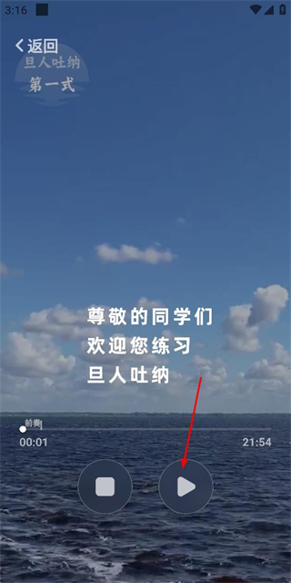 3、在练习准备页面点击播放按钮,开始旦人吐纳第一式的练习。