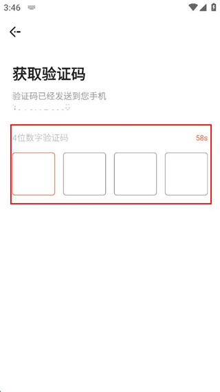 4、进入获取验证码页面,在对应的输入框中填写收到的4位数字验证码完成验证。