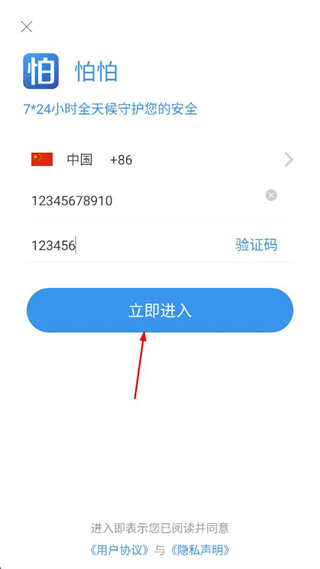 4、确认手机号码和验证码填写无误后,点击页面中的立即进入按钮,完成登录流程。