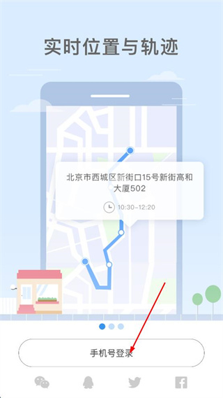 2、进入实时位置与轨迹展示页面,找到页面下方的手机号登录选项,点击该选项进入登录界面。