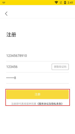 3、确认所有填写内容无误后,点击页面下方的注册按钮,完成注册操作,注册即代表阅读并同意服务协议及隐私条款。
