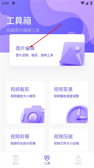 2、在工具箱页面,点击图片编辑选项,进入图片选择页面。