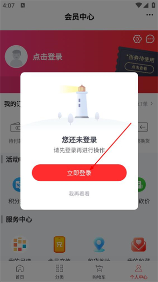 3、随后我们可以在提示框中,点击立即登录的按钮,进入登录页面。