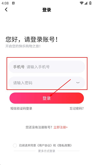 4、在登录页面,填写手机号和密码后,点击登录按钮完成登录操作。