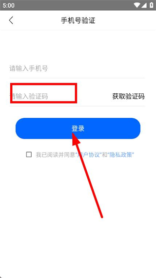 3、在手机号验证界面,输入要登录的手机号,并获取验证码。