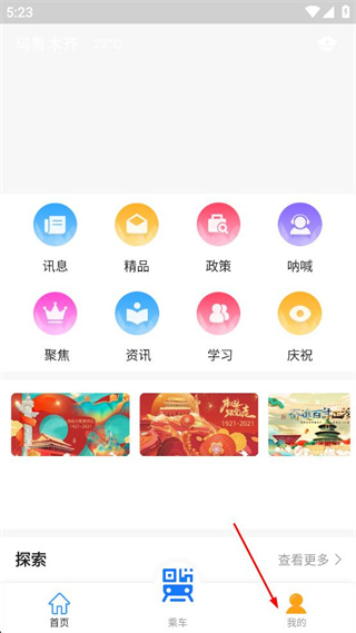 1、打开Metro丝路行首页,找到底部导航栏中的我的选项,点击该选项。