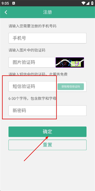 3、在注册账号页面填写验证码和密码后,点击注册完成注册操作。