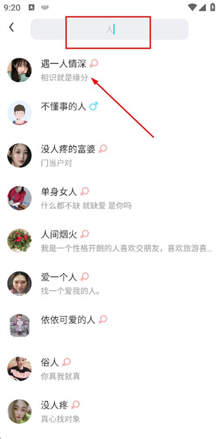 2、在搜索页面输入内容后,点击目标用户条目,进入该用户的个人详情页面。