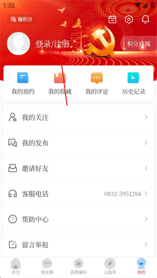 2、在个人中心页面,点击登录注册区域,可进入登录页面。
