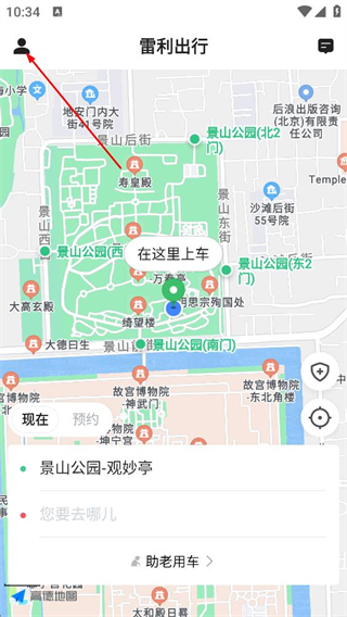 1、在雷利出行的地图页面,点击左上角的个人图标,进入登录页面。