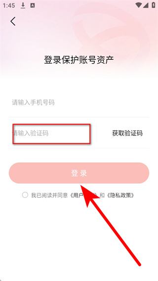 4、把收到的短信验证码填入验证码栏,勾选相关协议后,点击登录完成登录。