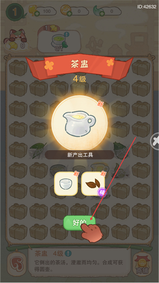 1、在茶盘界面,点击好的确认新工具,解锁茶盘道具,推进玩法。