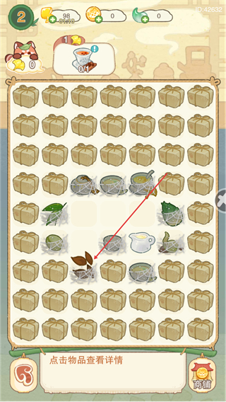 2、点击场景中的物品,查看道具详情,熟悉各类茶相关道具,积累资源。