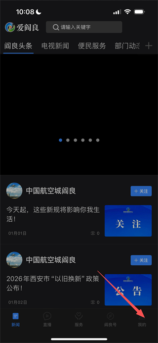 1、进入爱阎良后,点击底部的我的选项,可进入个人中心页面。