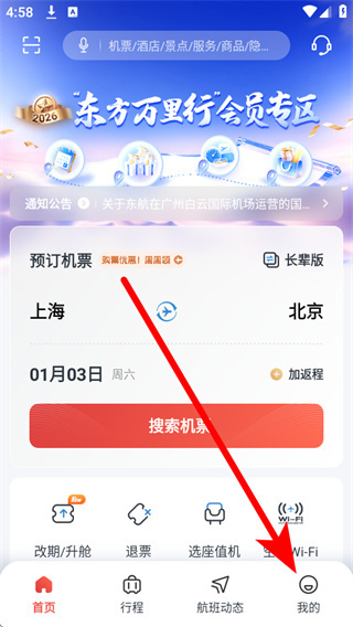 •首页行程卡片自动显示二维码,机场过关前快速扫码,登机更从容。