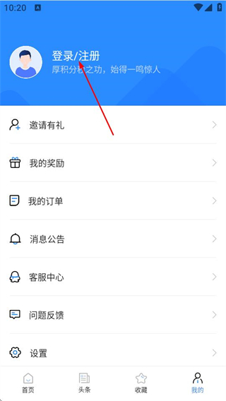 2、在个人中心页面,点击登录注册区域,可进入登录页面。