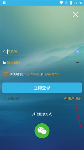 3、进入登录界面后,找到新用户注册选项,点击该选项,进入账号注册页面。