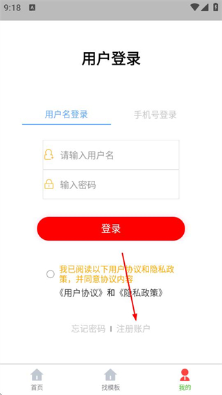 2、在登录页面,点击注册账户选项,可进入用户注册页面。