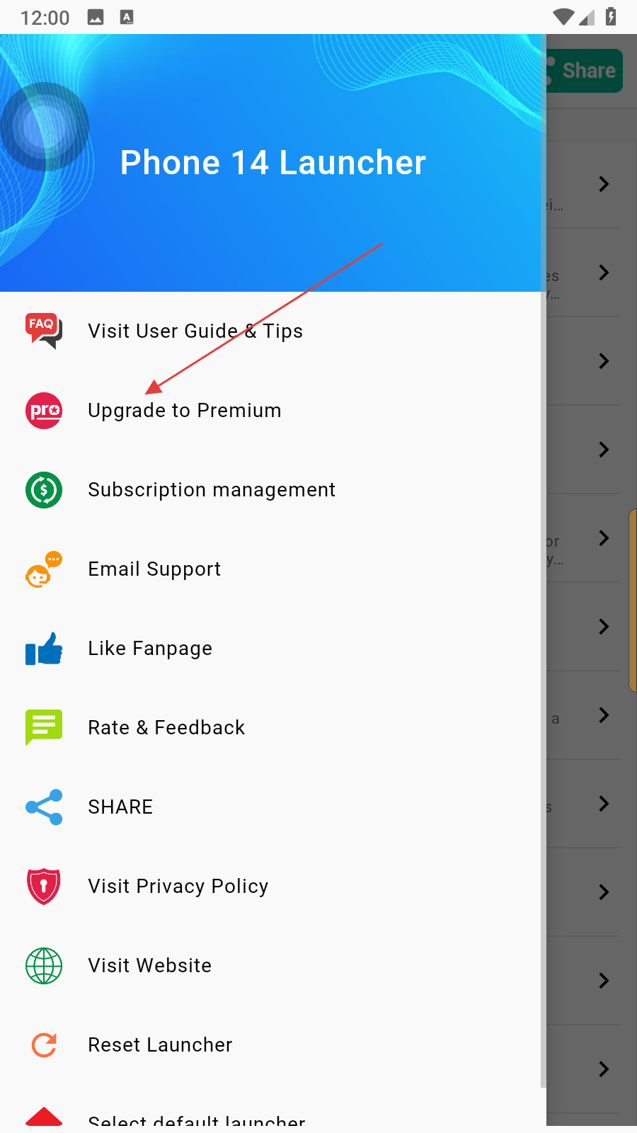 2、在菜单中找到标注Upgrade to Premium的选项并点击,进入高级版升级介绍页面。