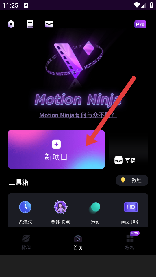 1、打开Motion Ninja APP,点击新项目,进入项目创建界面。