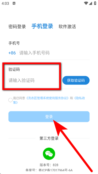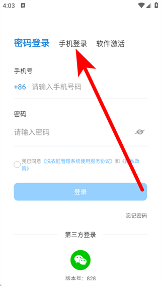 1、在洗衣匠的登录页面,点击手机登录,进入手机登录界面。