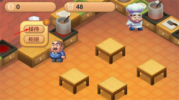 1、订单限时挑战,顾客需求会以气泡形式呈现,需在倒计时内完成对应菜品,逾期将影响小费收益。