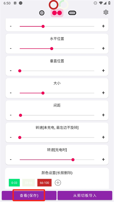 4、如果感觉设置好自己想要的呼吸光环的样式后,可以通过下方的查看(保存)这里进行保存方便使用。