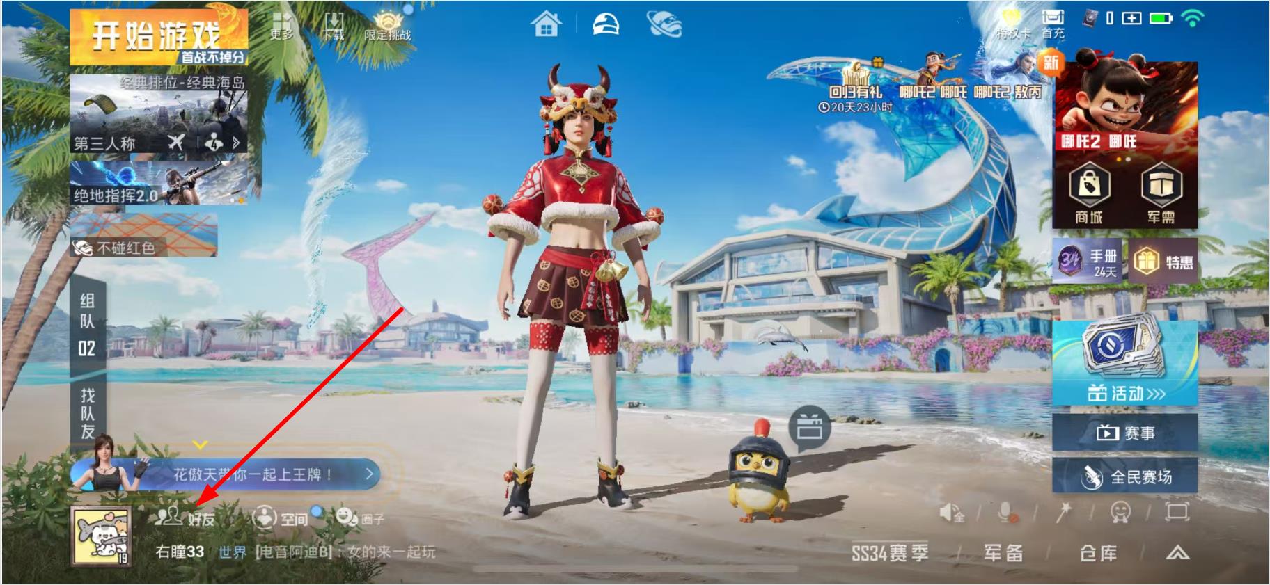 1、进入游戏主界面点击左下角的好友图标,打开好友相关界面。