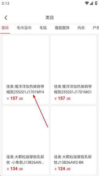 1、进入首页后,点击时尚服饰选项,可进入对应的类目商品页面。