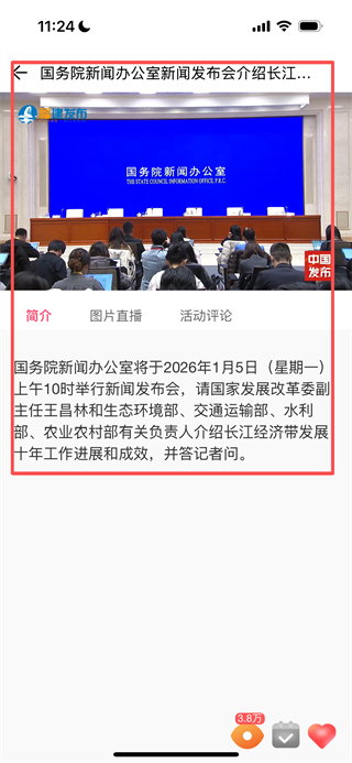 3、在直播播放页面,可观看直播内容,同时查看直播简介等信息。