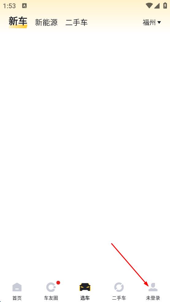 2、进入懂车帝APP主界面后,在界面底部导航栏中找到“未登录”选项并点击,界面会切换到个人相关页面。