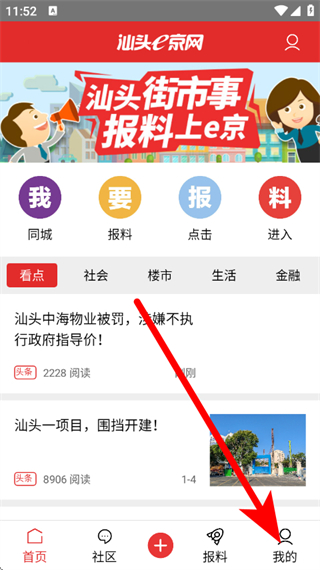 1、在汕头e京网页面,点击底部我的选项,进入登录页面。