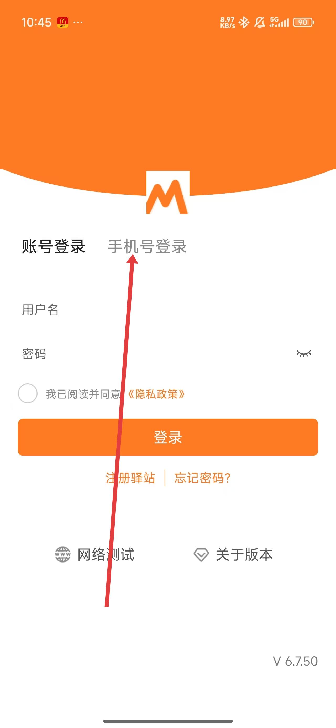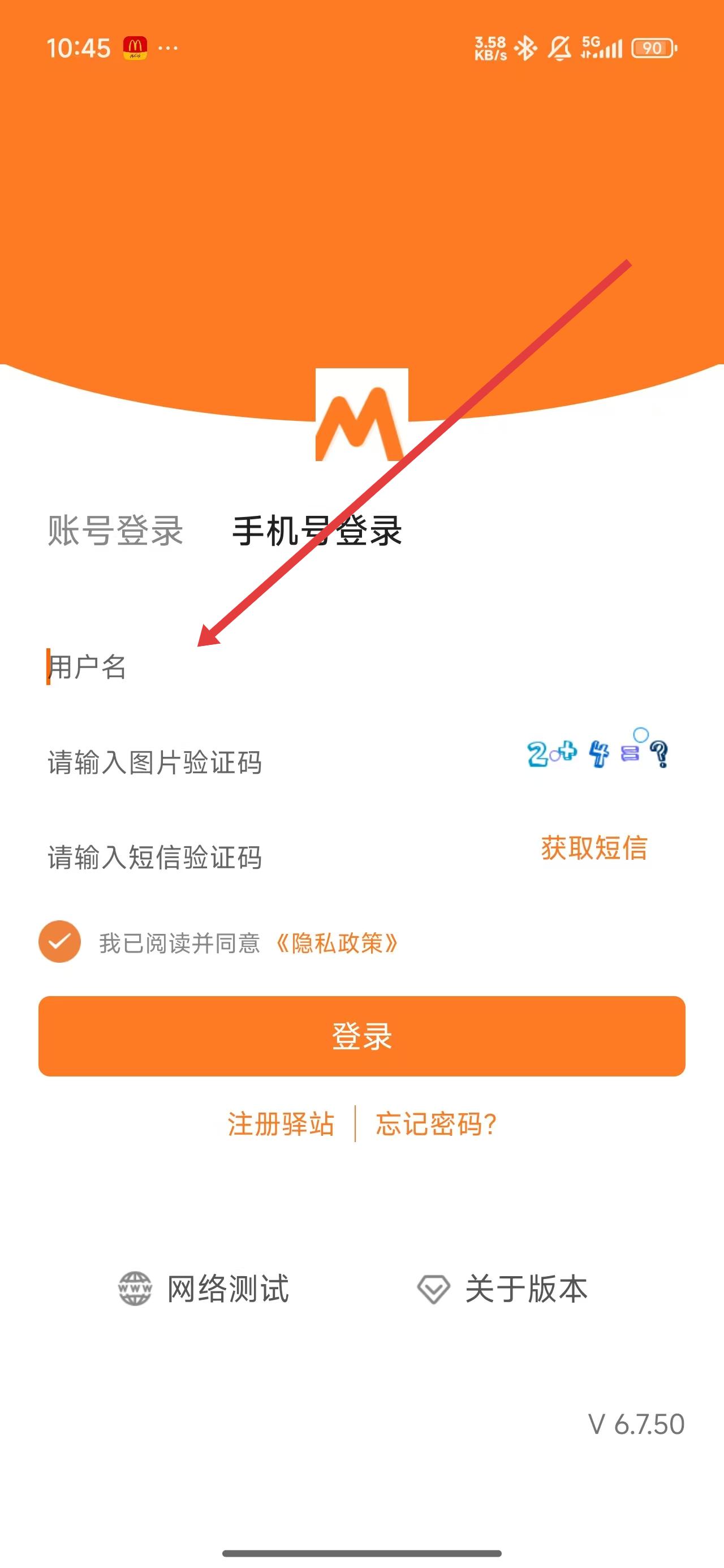 3、在手机号登录界面中,在用户名处输入手机号以获取短信登录账号。
