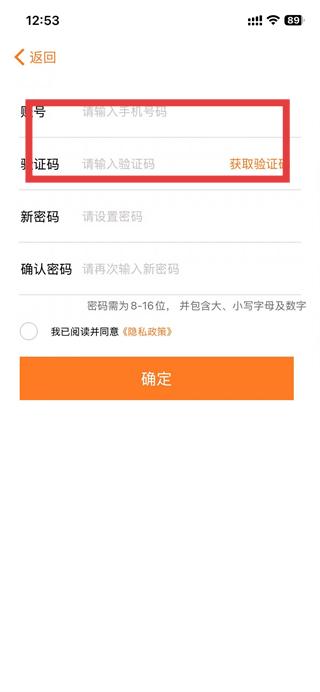 2、在密码找回页面,输入绑定的手机号和短信验证码。